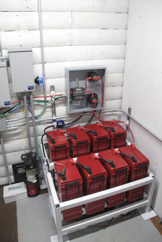 I am a self taught MIG welder who has previously done low scale projects such as tables, hooks, and small sheet metal projects. The battery rack was a lot of welding, but my brother and I were able to finish it in 3 days. We fabricated the rack at our house, and then transported the behemoth to our cabin. To prevent rusting, we coated it with a rust preventing primer. The installed rack is fully wired up and the system is functional (figure 4).