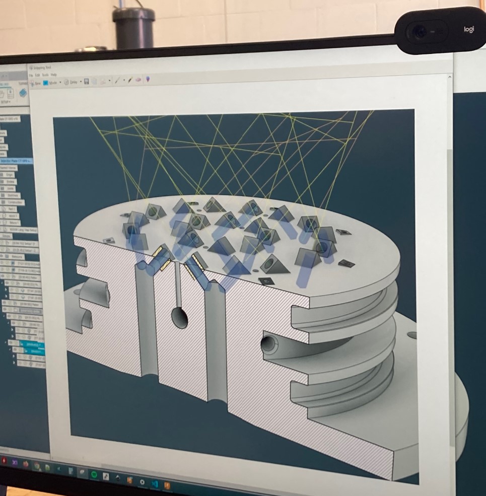 I am responsible for manufacturing the engine and test stand components. Most engine and test stand components were machined in our student shop. Our chamber and saddle components required some fixturing that we did not have in-house, so we sent them out to be machined (Figure 1). Most regeneratively cooled engines today are 3D printed or plated; however, in hopes of manufacturing all components in our student shop, we chose to use a saddle and outer jacket. We manufactured our parts using both 3-axis and 5-axis CNC machines and programmed them using Fusion360 (Figure 2).