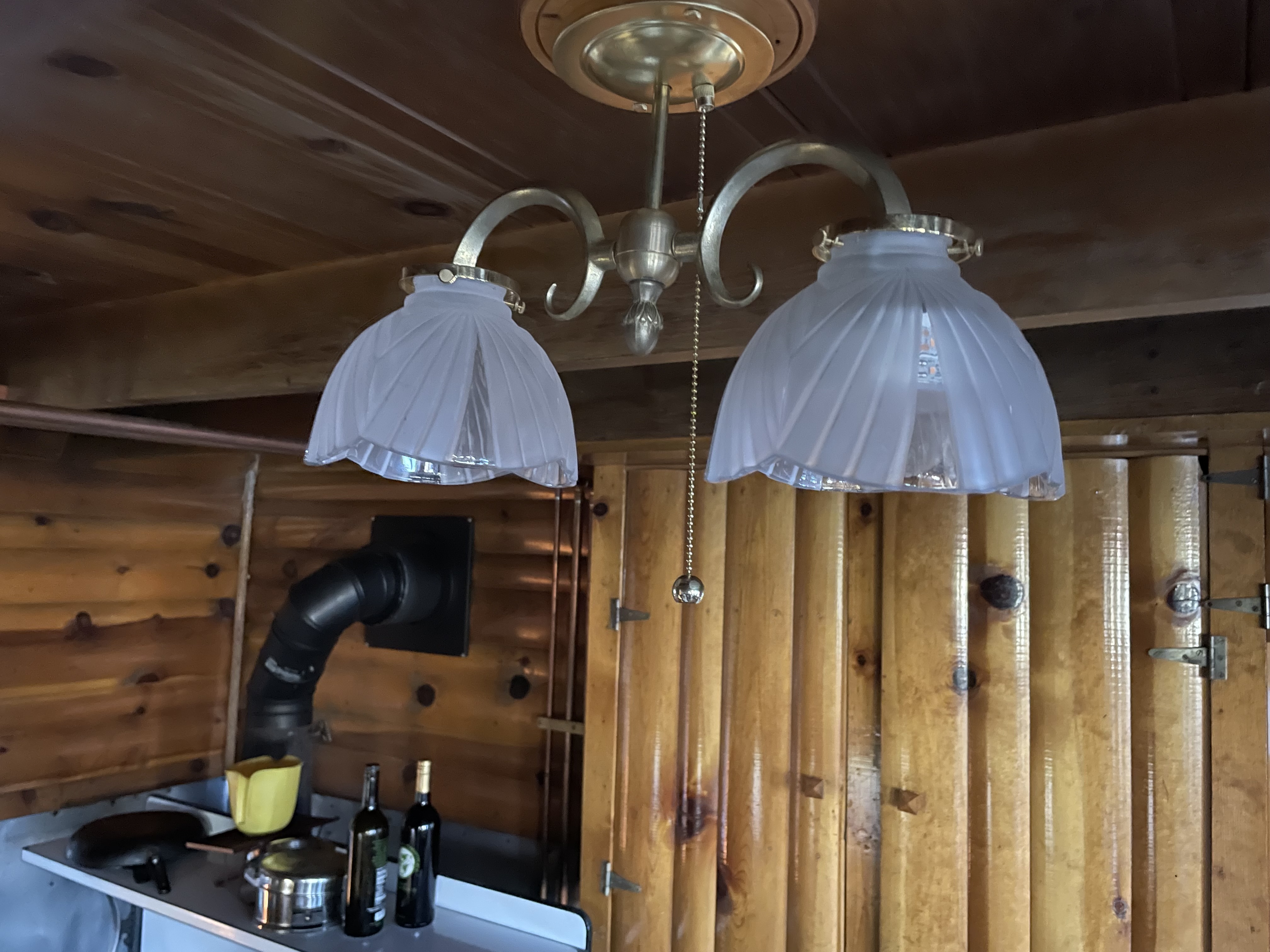 The brass parts fit perfectly with the cabin’s style, and the lights have proven to be a great replacement for the previous gas fixtures (Figures 7 and 8).